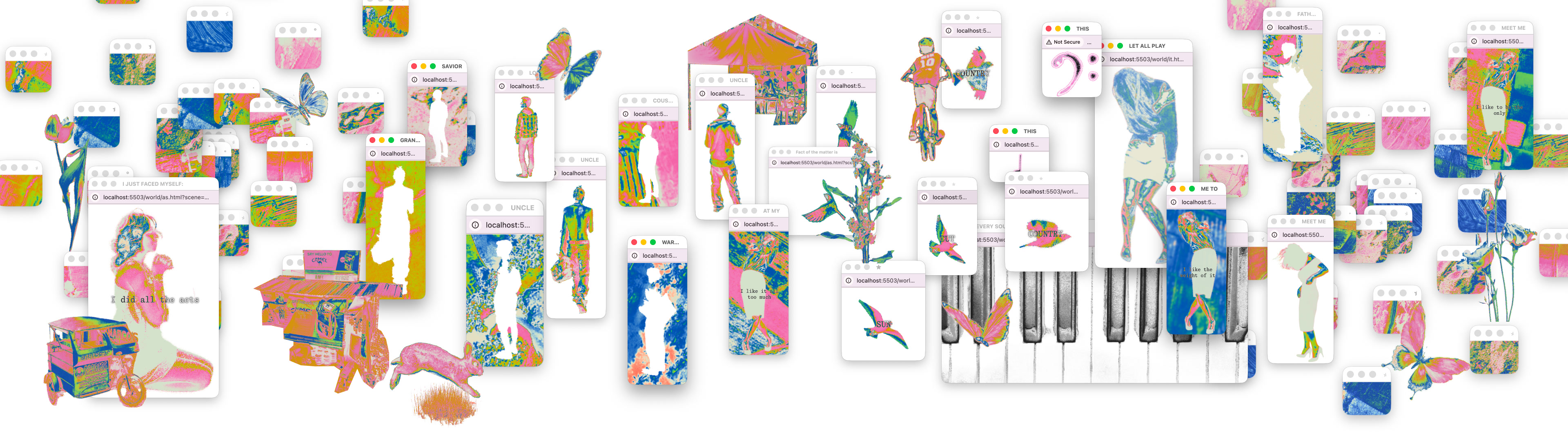 Chia Amisola is an artist devoted to the internet's loss, love, labor, and liberation. Amisola's practice traces technology's relationship with ambience, agency, and the apparitional in spaces domestic to divine. Presently, their body of work centers around dense hypertext and interactive non/autofictions, treating the desktop as a site of performance, and deconstructing the fantasies of autonomy that the internet provides. Their work has been presented internationally at Art Fair (Philippines); the V&A and Tate Britain, (UK); Tai Kwun (Hong Kong); WSA & Gray Area (New York, USA); and the Experimental Games Showcase at GDC. They’ve been awarded grants and commissions from Rhizome and the Internet Archive, and have been featured in Forbes 30 Under 30 Asia, The New Yorker, BOMB Magazine, an Frieze. They’re currently based between Manila & New York.